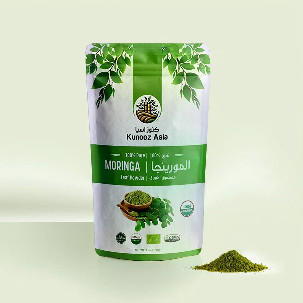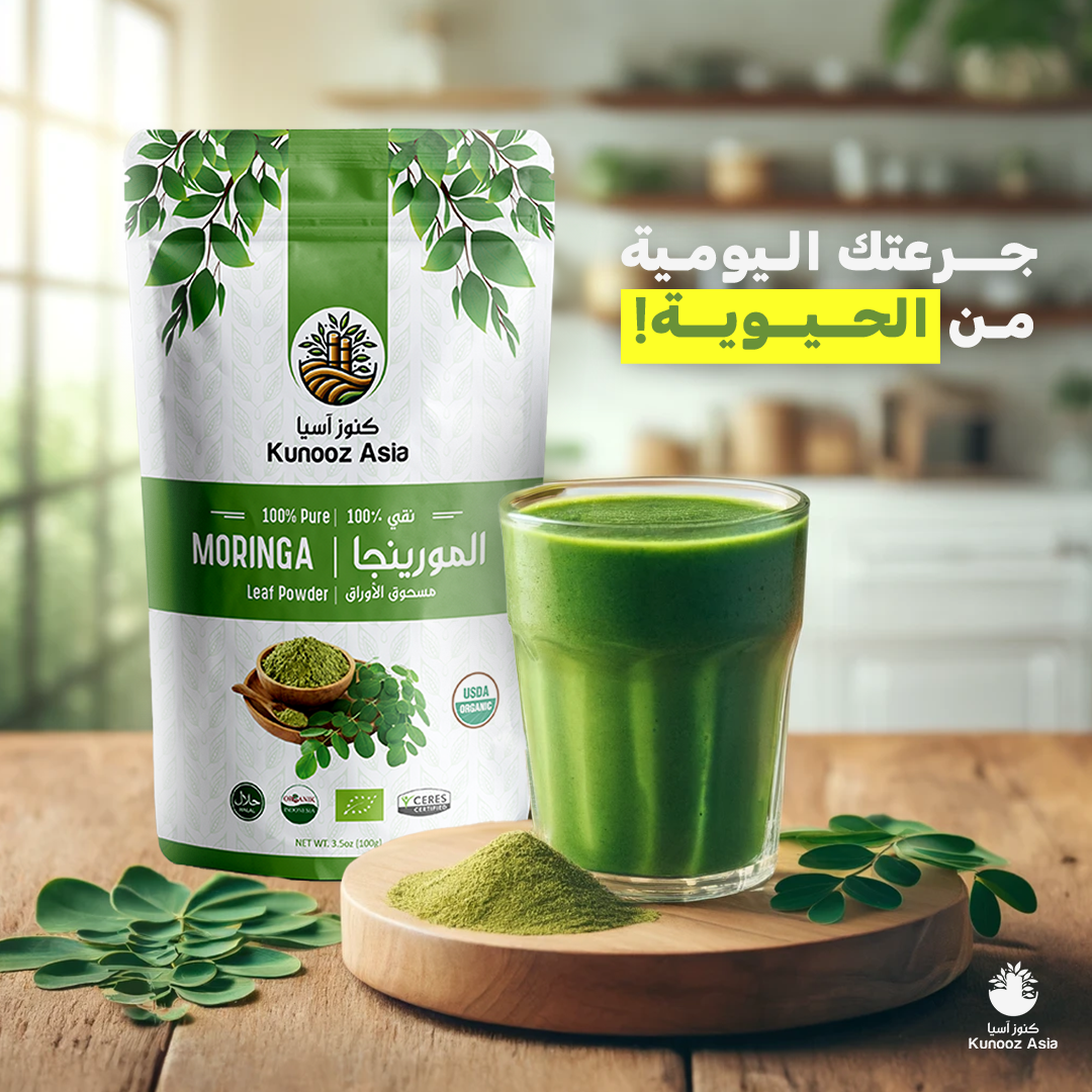 اكتشف الفوائد الصحية مع بودرة أوراق المورينجا النقية 100% من كنوز آسيا. مستخلصة من أشجار المورينجا العضوية، تعد بودرتنا المكمل الغذائي المثالي في كل عبوة بوزن 100 جرام. غنية بالفيتامينات والمعادن والأحماض الأمينية، تدعم بودرة المورينجا صحتك بشكل طبيعي
